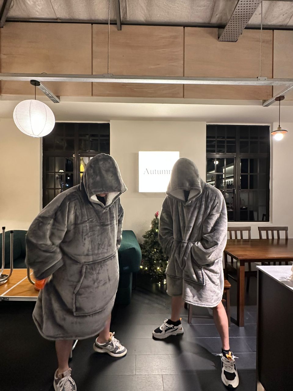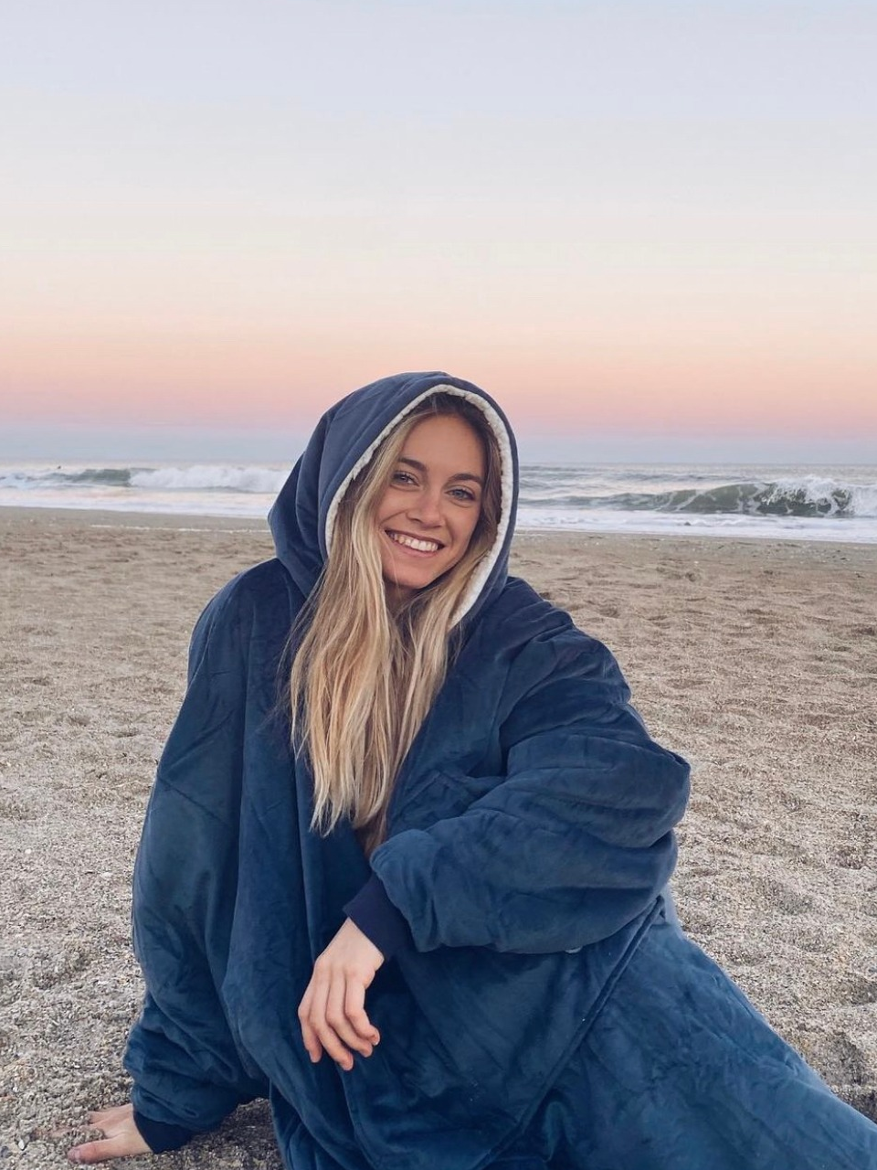 Wearable blanket designed for style and comfort perfect for both indoor and outdoor use. Features a convenient mini hanger for your favourite toys or keys.
